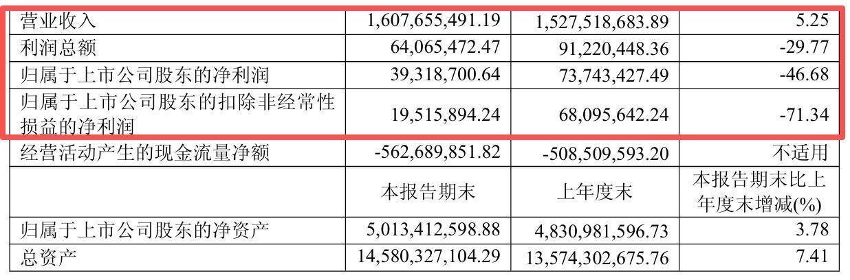 2025年上半年,公司营业收入为16.08亿元,同比增长5.25%;归母净利润为3931.87万元,同比下降46.68%;扣非归母净利润为1951.59万元,同比下降71.34%。