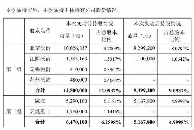 陈江及其一致行动人天龙重工也进行了减持,但提前终止了减持计划,共减持130.23万股,占公司总股本的1.26%,减持总金额为4478.29万元。