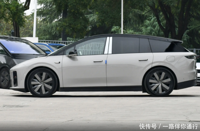 车身侧面造型就像是SUV和MPV的结合体,车身长度4950mm,轴距3000mm,原厂配备20寸轮圈,当然用户还可以选装21英寸轮圈。四轮死角的设计尽可能将更多空间留给车内,车顶带有一定下滑态势,所以整个车身形态看起来没有那么笨重,很多设计元素都考虑到降低车身风阻系数,整体看起来要比理想i8更顺眼。