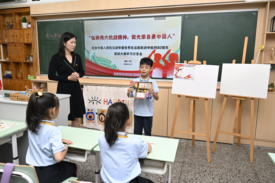 这堂思政大课由教育部会同中央网信办、人民日报社、国家文物局联合开展。其中,小学课程“众志成城”由上海思政课教师团队精心打磨,聚焦儿童视角引导学生建立对中国人民抗日战争的感性认知。